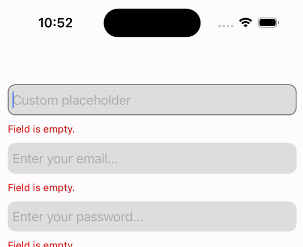 privatefuncsetup(){textField.placeholder=viewModel.placeholdertextField.isSecureTextEntry=viewModel.isSecuretextField.keyboardType=viewModel.keyboardTypetextField.autocapitalizationType=viewModel.autoCaptextFieldBackgroundView.addSubview(textField)addSubview(expandingVstack)expandingVstack.addArrangedSubview(textFieldBackgroundView)// old text input UIexpandingVstack.addArrangedSubview(errorLabel)// is hiddentextFieldBackgroundView.widthAnchor.constraint(equalTo:widthAnchor).isActive=true// isn't required, but I like to keep ittextFieldBackgroundView.topAnchor.constraint(equalTo:textField.topAnchor,constant:-9).isActive=truetextFieldBackgroundView.bottomAnchor.constraint(equalTo:textField.bottomAnchor,constant:9).isActive=truetextField.leftAnchor.constraint(equalTo:textFieldBackgroundView.leftAnchor,constant:6).isActive=truetextField.rightAnchor.constraint(equalTo:textFieldBackgroundView.rightAnchor,constant:-6).isActive=trueerrorLabel.widthAnchor.constraint(equalTo:widthAnchor).isActive=truetranslatesAutoresizingMaskIntoConstraints=false// and the height ...}